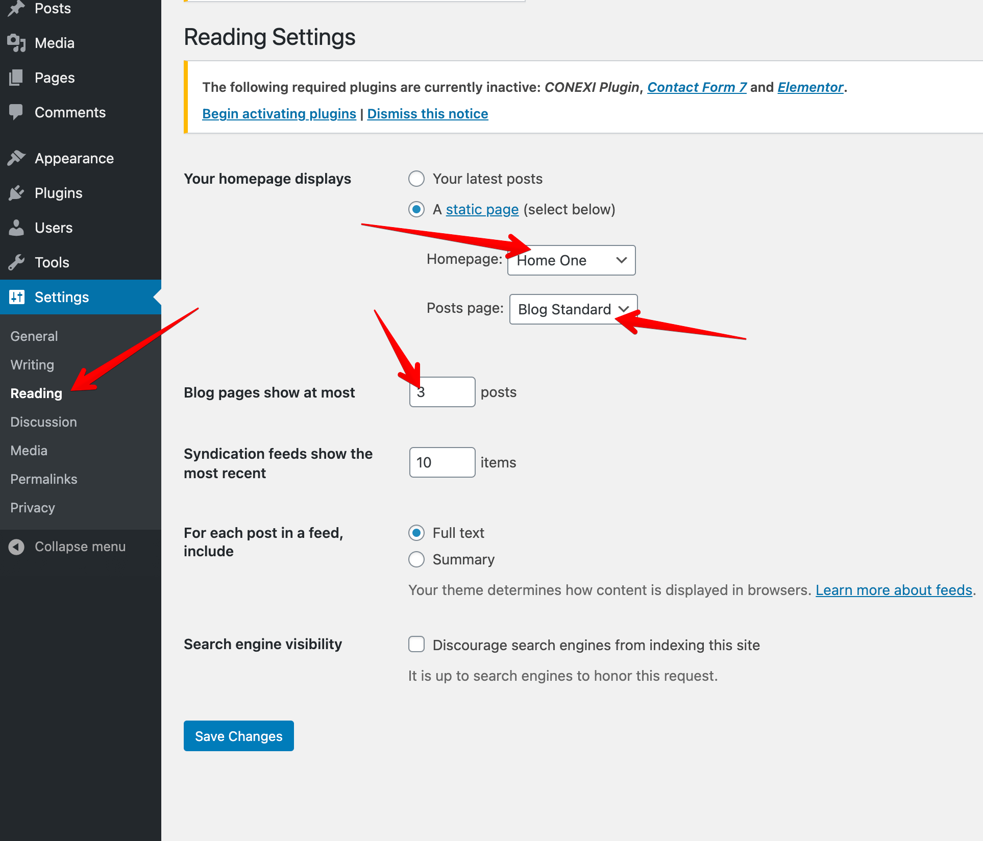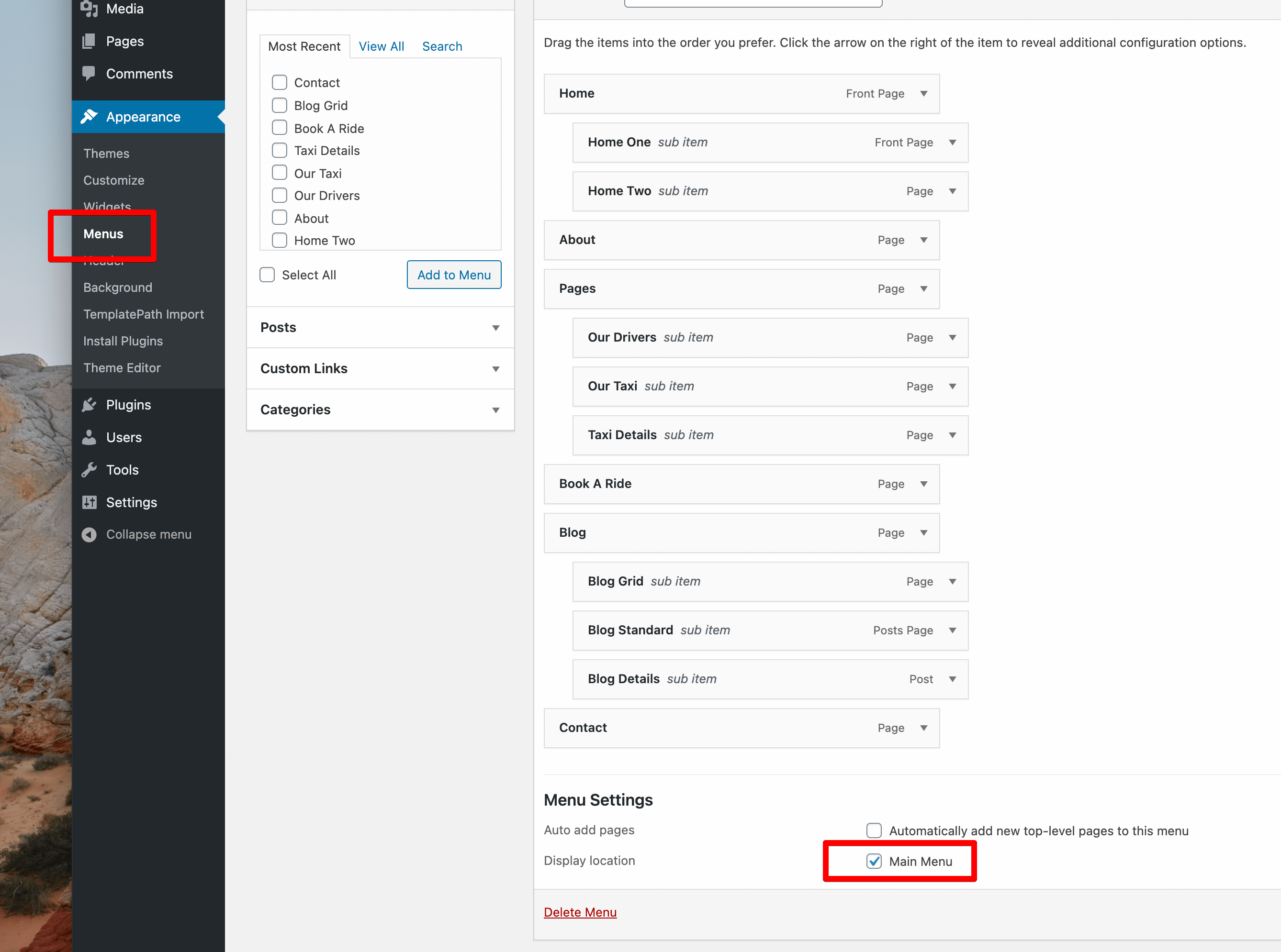 Menu, Front Page & Blog