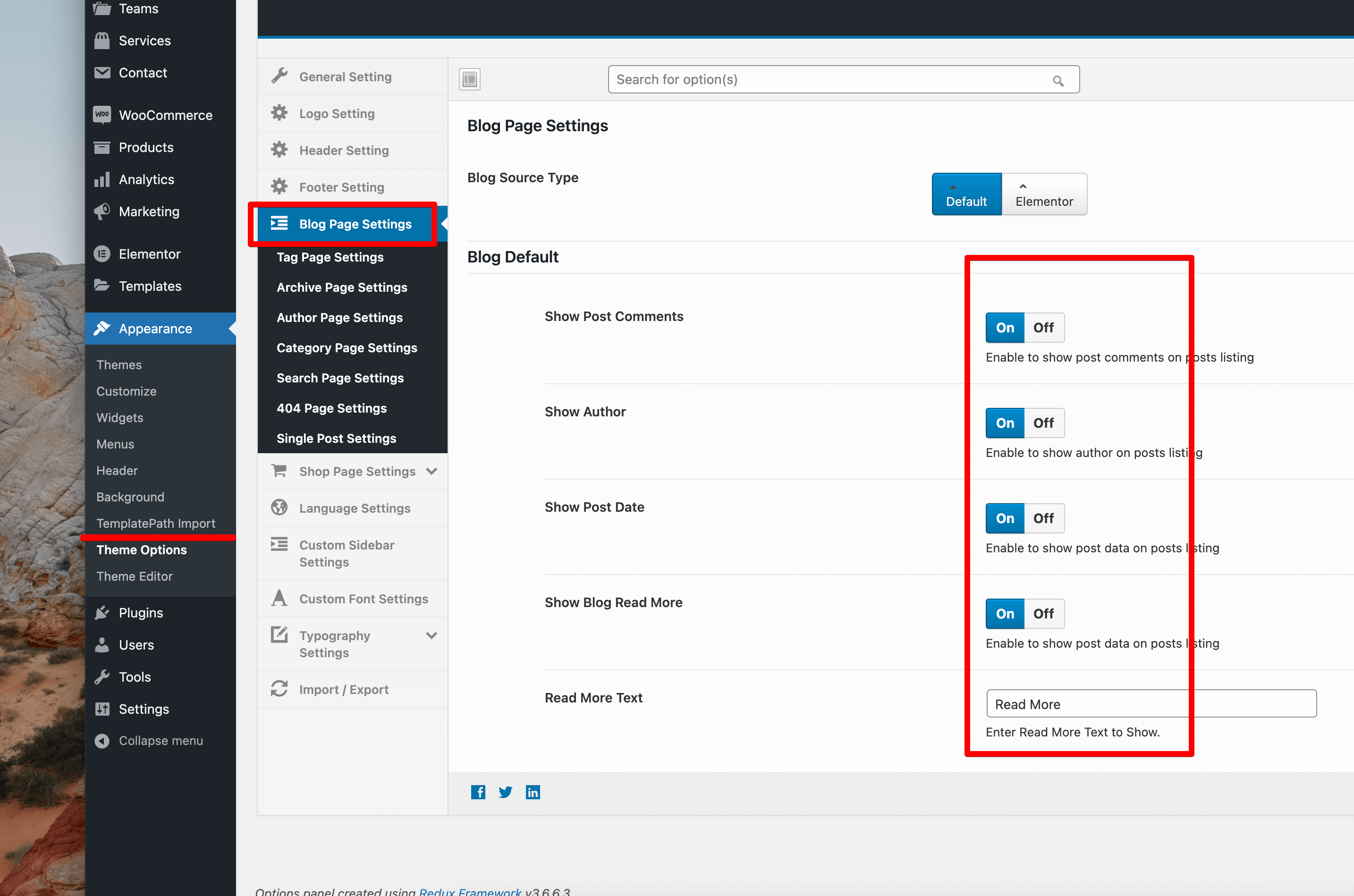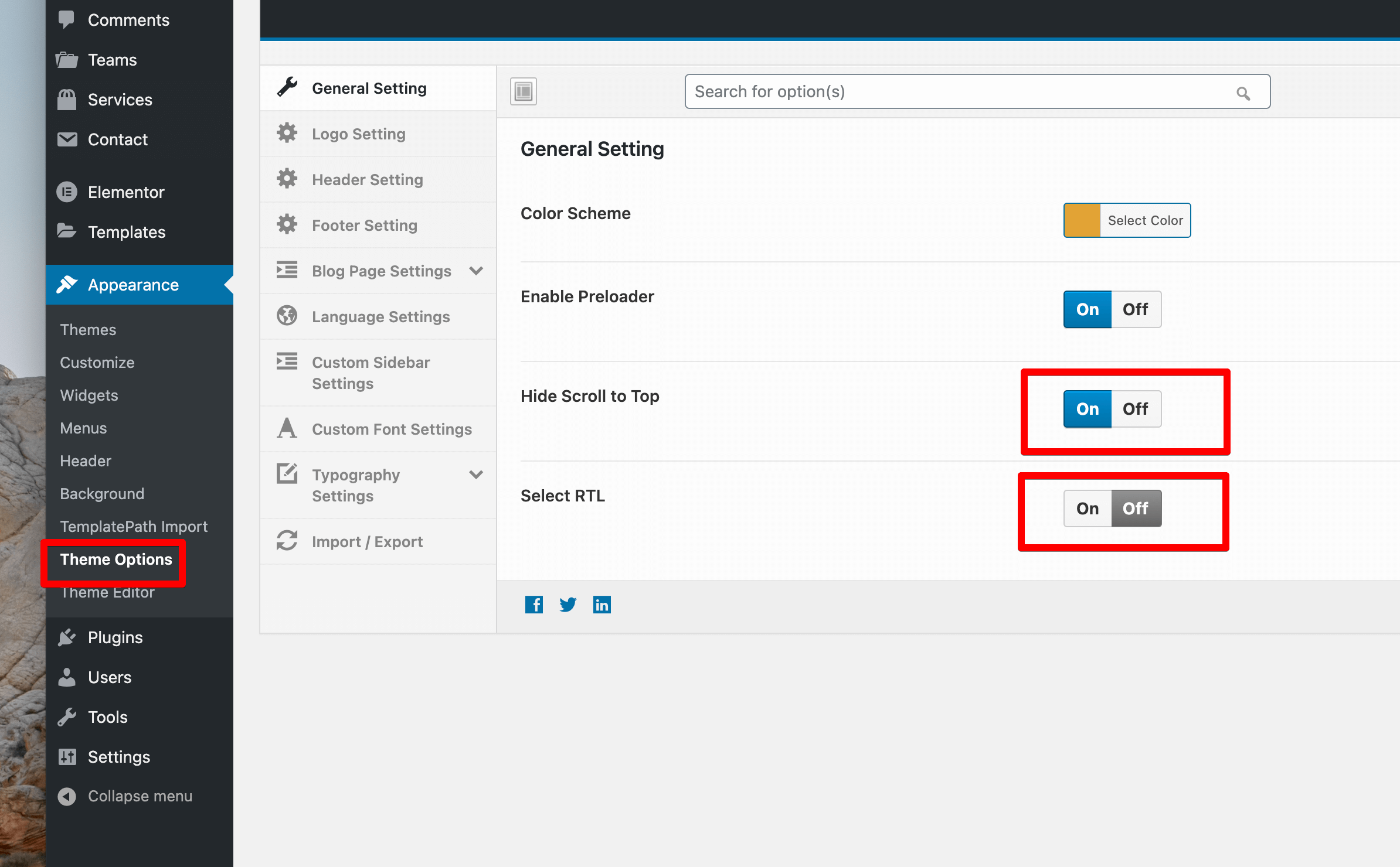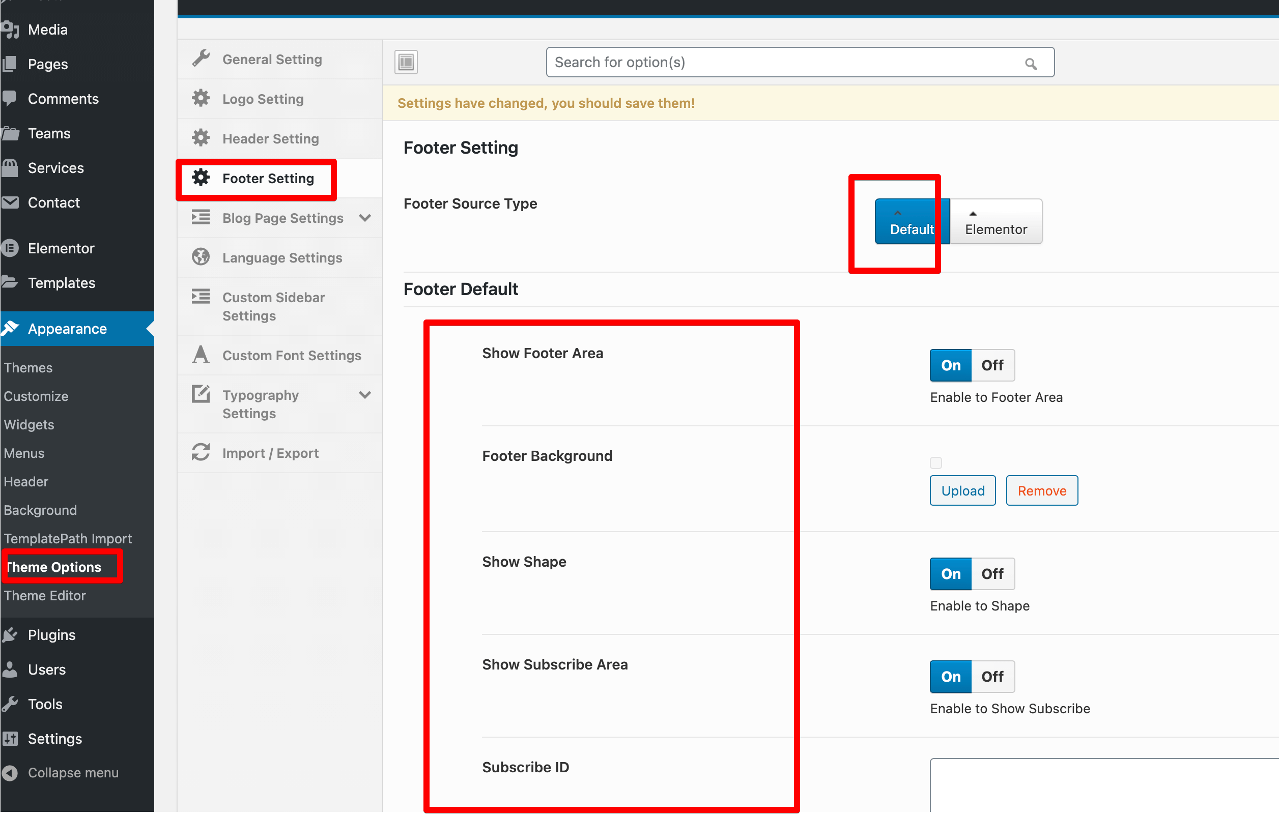 Footer Setting