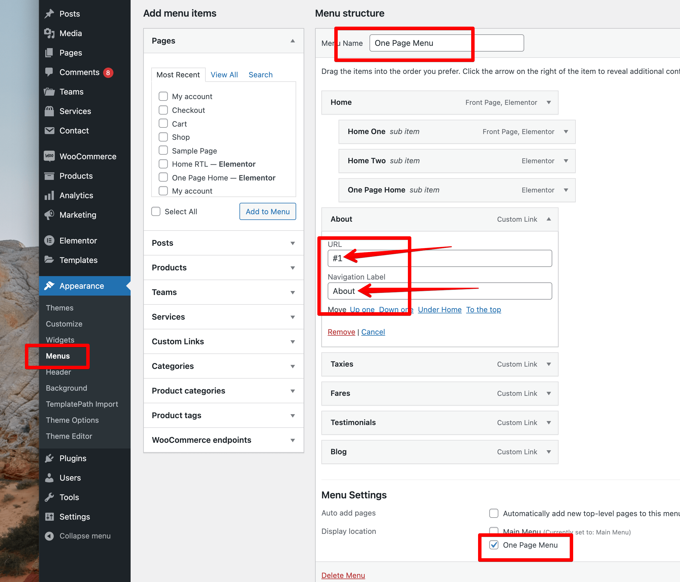 One Page & Menu
