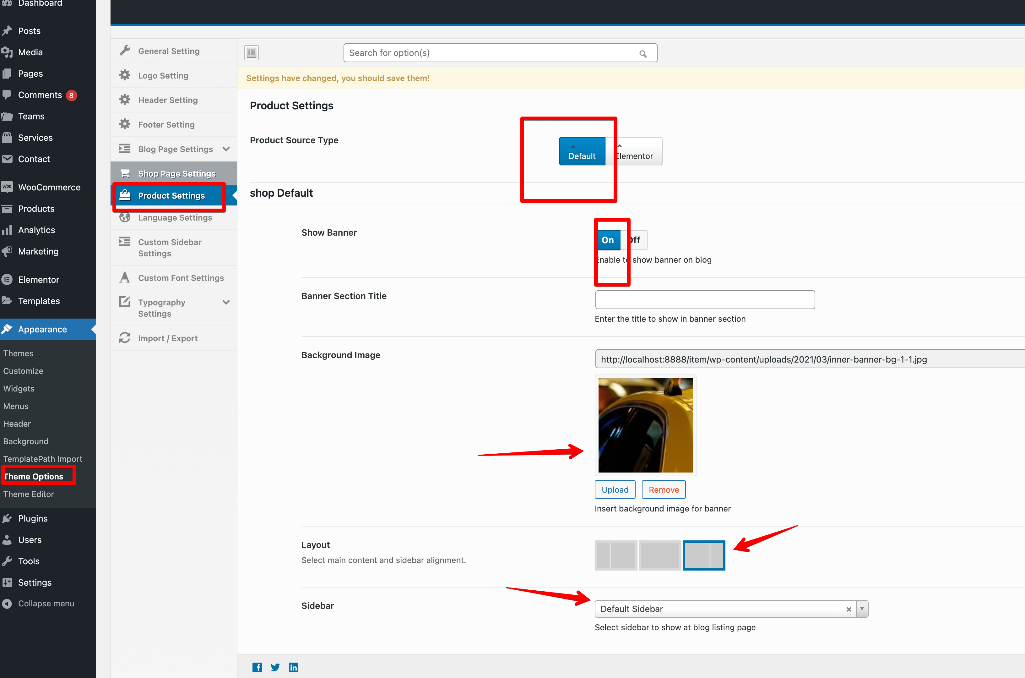 Page Banner Title & Sidebar